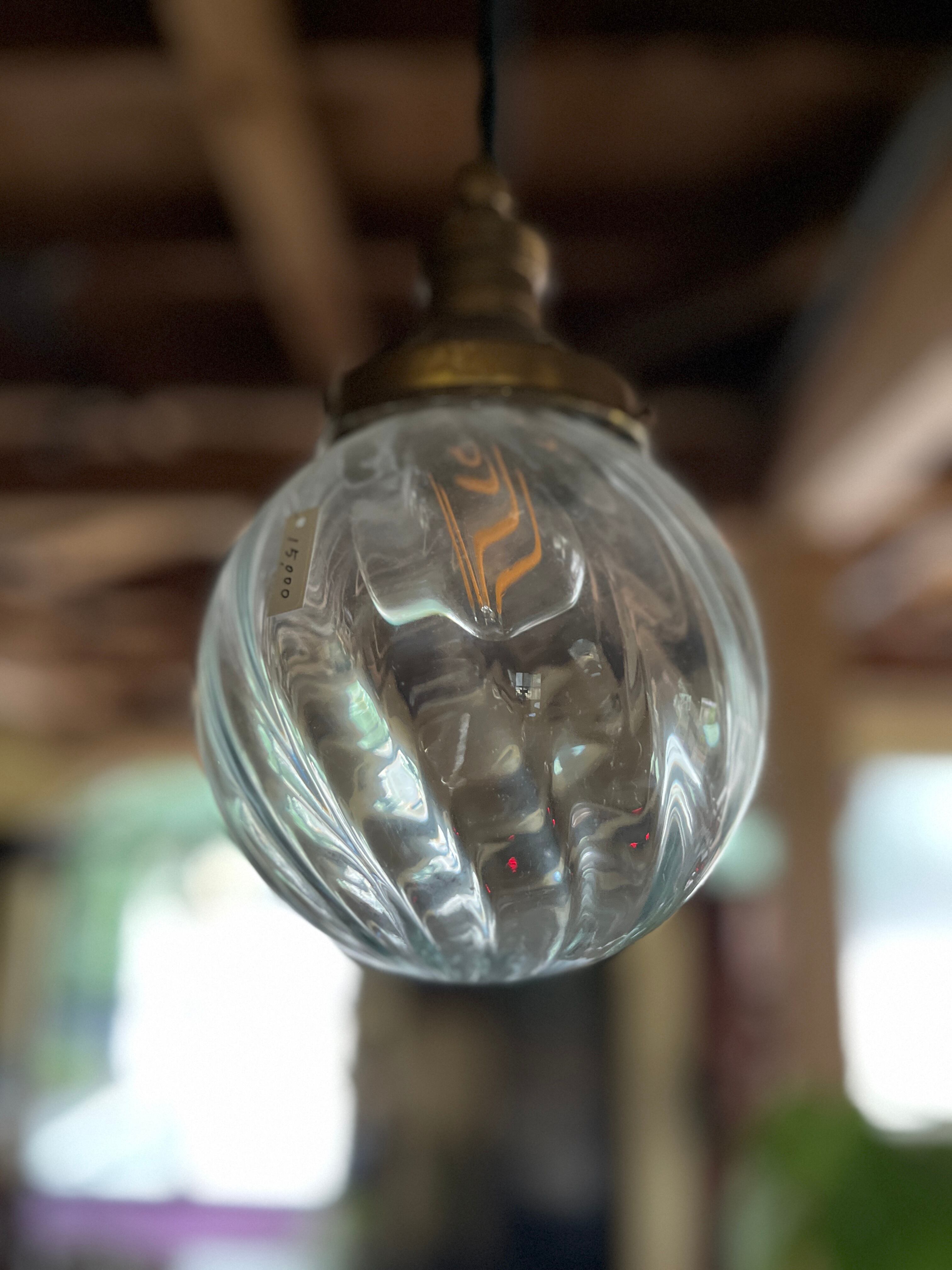 曲線が美しい丸いクリアガラスのランプです。どのお部屋にも馴染みます。